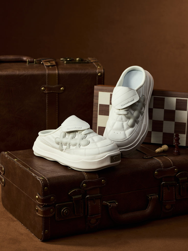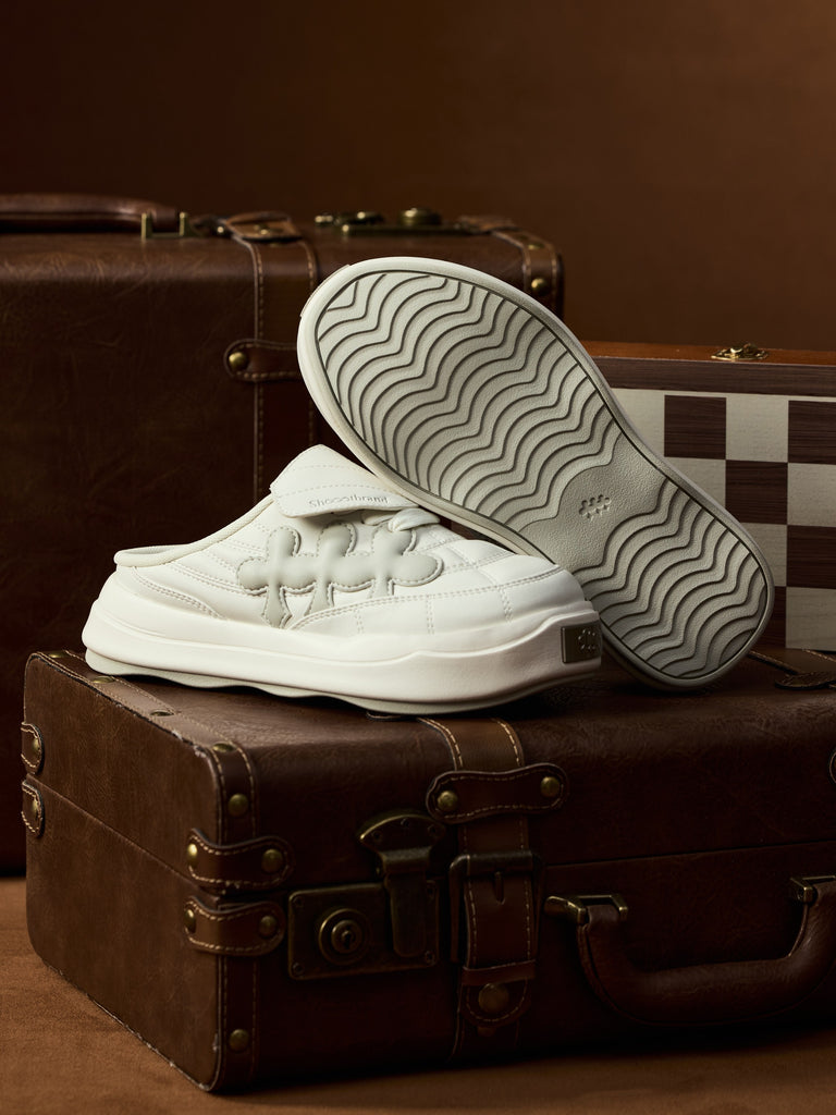 The Random Low 'Spirit' sneaker is crafted from premium imported calfskin leather in our OG 'Spirit' colorway. Designed with a slip-on clog-inspired silhouette for effortless wear. Features a stainless steel logo plaque at the toe, contrast-stitched plum logo at the sides, and a custom wavy platform sole with a 4.5cm rise and signature SHOOT accents.